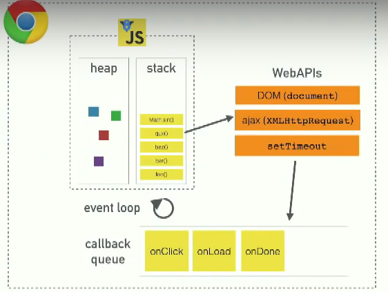 ->자바스크립트는 하기 그림과 같이 클라이언트의 요청에 따라 여러 함수들이 실행되게 되고, 하나의 stack에 task들이 쌓이게 된다. 그 후 LIFO 구조로 하나씩 수행되게 되고, await, callback 등이 작동함에 따라 çallback queue에 담긴 후순위 task들이 eventloop를 돌아서 stack에 자리잡고 실행되게 된다.