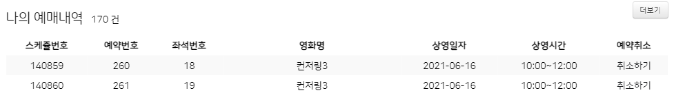 -코드 수정 후 하단과 같이 다중 예매가 잘 실행되는 모습이다.