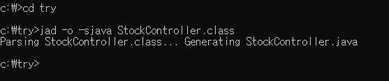 2)명령프롬프트로 해당 경로로 이동하여 'jad -o -sjava 파일명.class'를 입력한다.