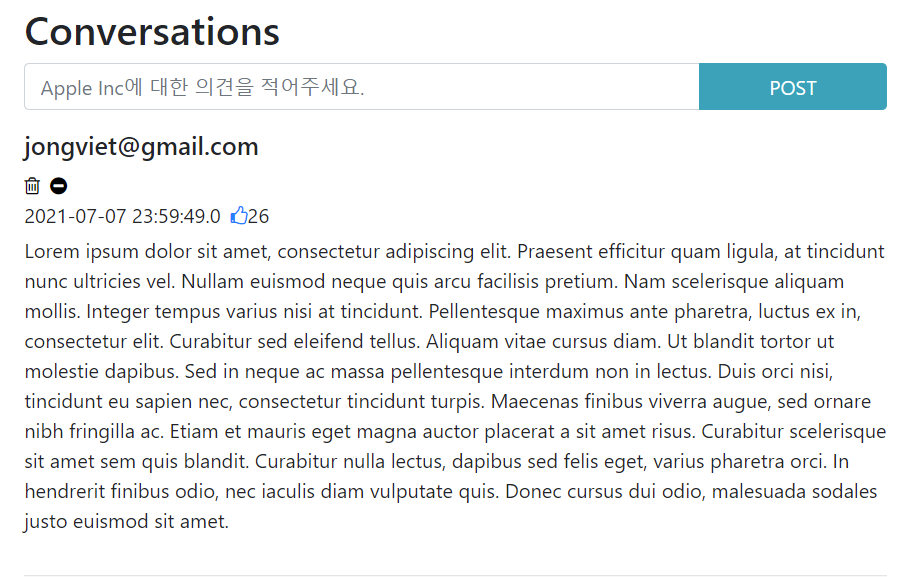 -특정 종목 댓글 관련하여, 추천/삭제/신고 기능을 추가 완료했다.
