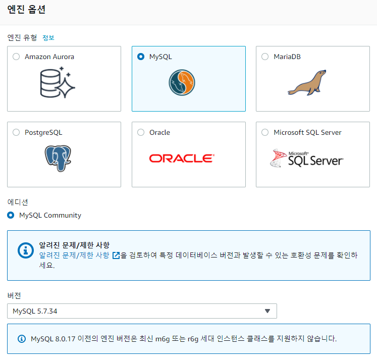 2)DB 타입은 로컬에서 작업한 DB와 같이 MySQL or Oracle 등으로 선택 한 후 버전을 일치 시킨다.